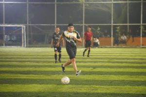 SERU – Keseruan Forkopimda Mini Soccer di RTH H Hasan Basry, Pelaihari, Selasa (10/3) malam. Bupati H Rahmat Trianto langsung ikut merumput.