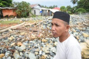 “Breakwater ini hancur setelah tiga hari tiga malam tanpa henti diterjang ombak. Seandainya tidak ada breakwater, habis rumah saya oleh ombak,” ucap Zahri.