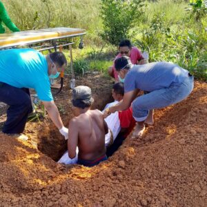 𝗧𝗔𝗡𝗔𝗛 𝗟𝗔𝗨𝗧, 𝗶𝗻𝘀𝗽𝗶𝗿𝗮𝘀𝗶𝘁𝗮𝗹𝗮.𝗰𝗼.𝗶𝗱 – Lantaran tak ada keluarga yang datang untuk mencari dan menjemputnya, jenazah pria tanpa identitas atau Mr X yang ditemukan membusuk di sebuah bedakan kosong Jalan Ki Hajar Dewantara, Gang Swadaya Angsau Kecamatan Pelaihari, Kabupaten Tanah Laut dimakamkan.