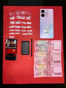 Saat penggeledahan yang disaksikan warga sekitar, polisi menemukan 21 paket sabu yang dibungkus plastik klip transparan.