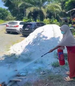 Rohmah dan pekerjanya juga dikenalkan dengan alat pemadam api ringan (APAR) serta praktik penggunaannya. Ini merupakan perlengkapan direkomendasikan wajib ada pada tiap tempat usaha.